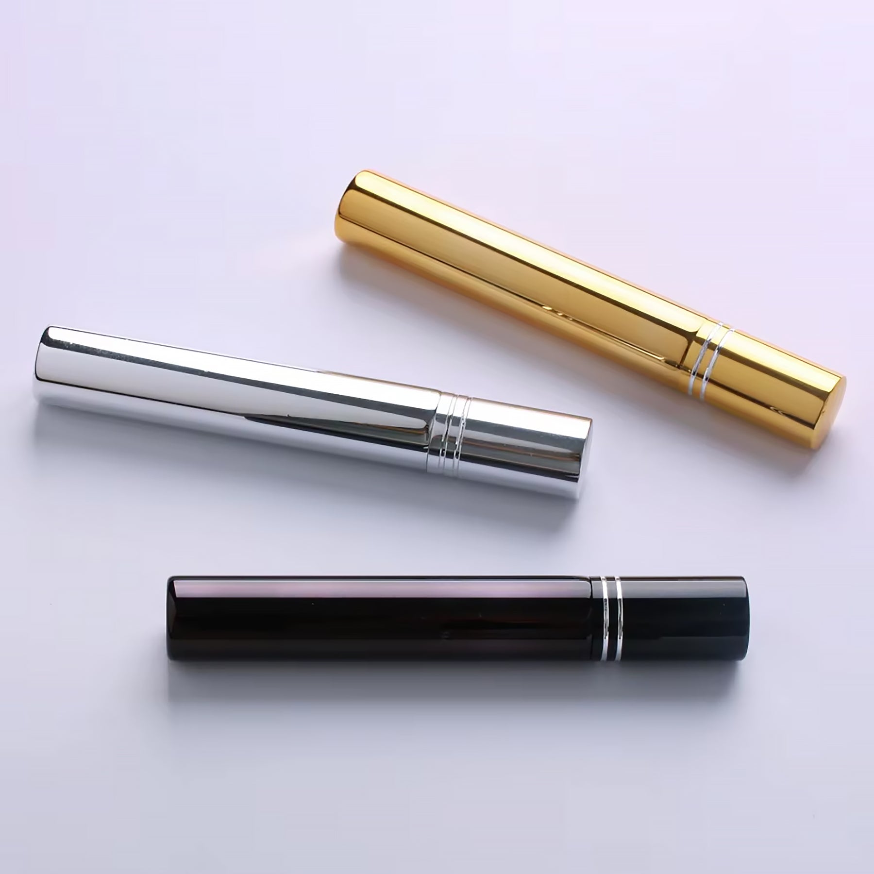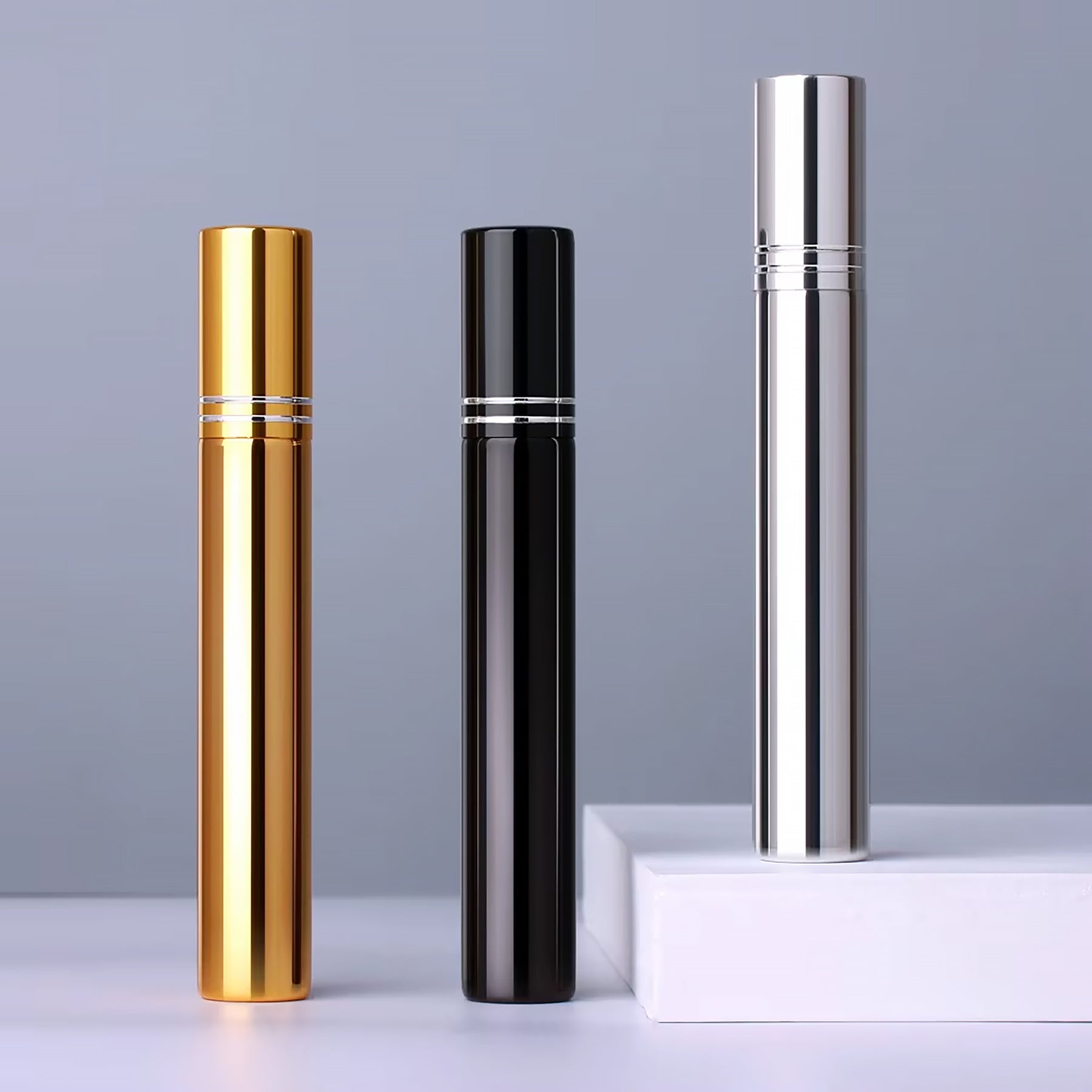 High-quality and luxurious empty perfume bottle in a variety of colors. Made of high-quality glass with aluminum sprayer. Especially suitable for carrying in a bag, for traveling and boarding a plane. It can be used to fill your favorite perfume to take it with you anywhere. Very light weight and convenient for portable use.